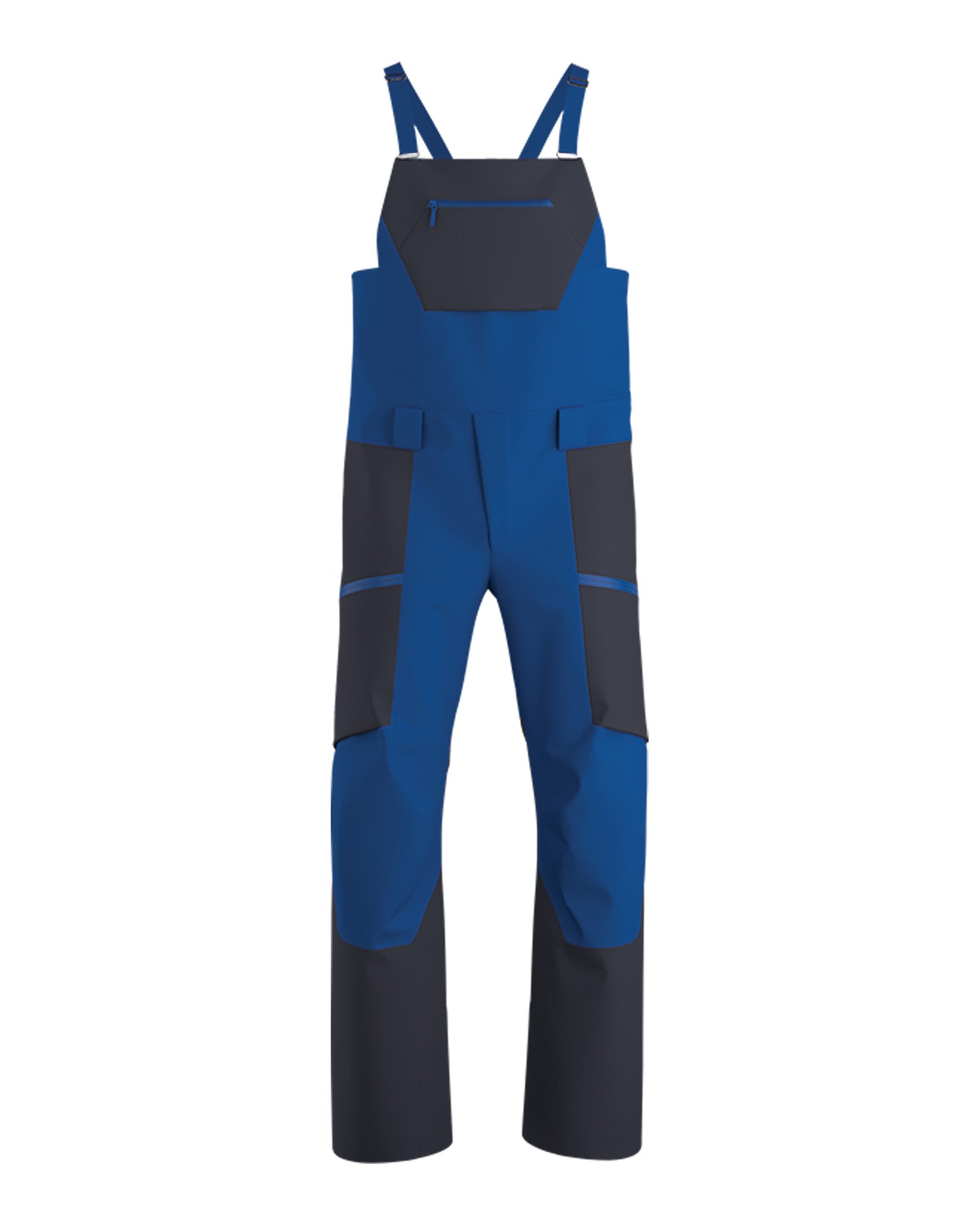 Large bib pocket, two zippered thigh pockets